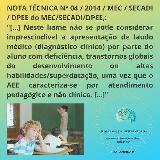 Se a criança tem alguma dificuldade escolar, bem como transtornos do neurodesenvolvimento que necessite de um Atendimento Educacional Especializado na escola, ela tem direito, independente de Laudo Médico.